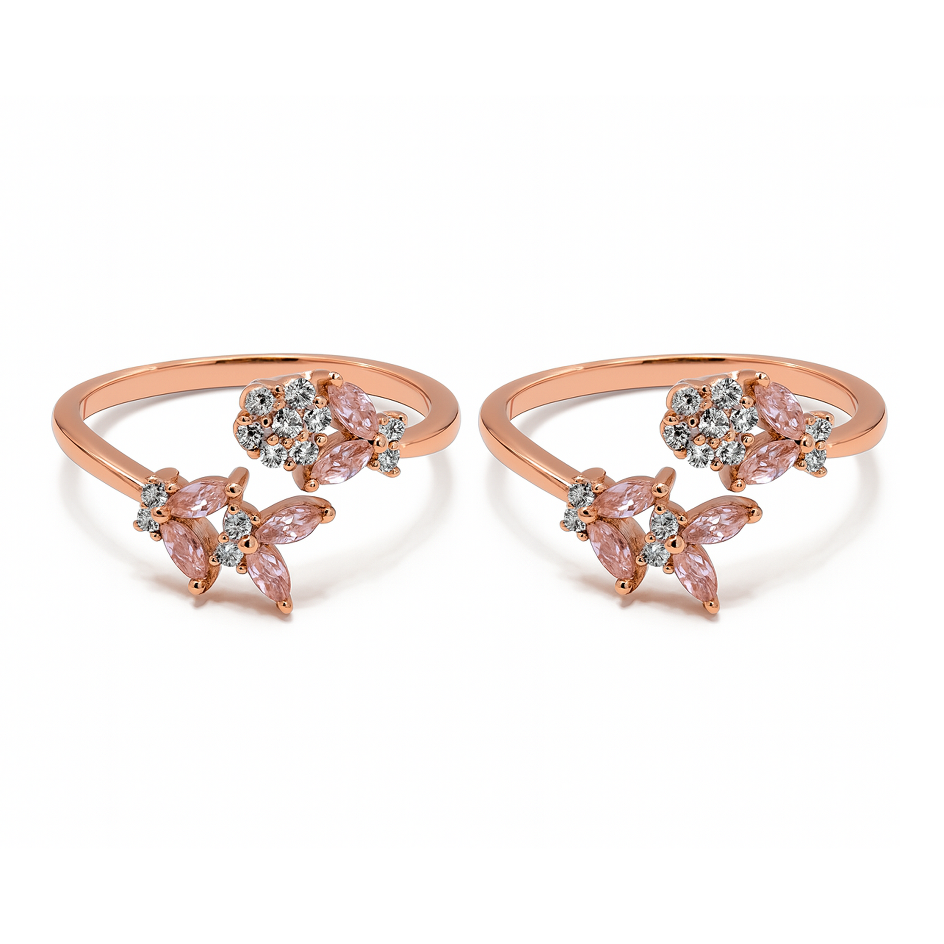 The Bloom Whisper Toe Ring captures the delicate essence of blossoming flowers with its cluster of marquise-cut petals and sparkling accents. Designed with an open silhouette, it blends subtle elegance with playful charm, making it a timeless piece to wear across seasons. Available in a variety of colours to match your style.