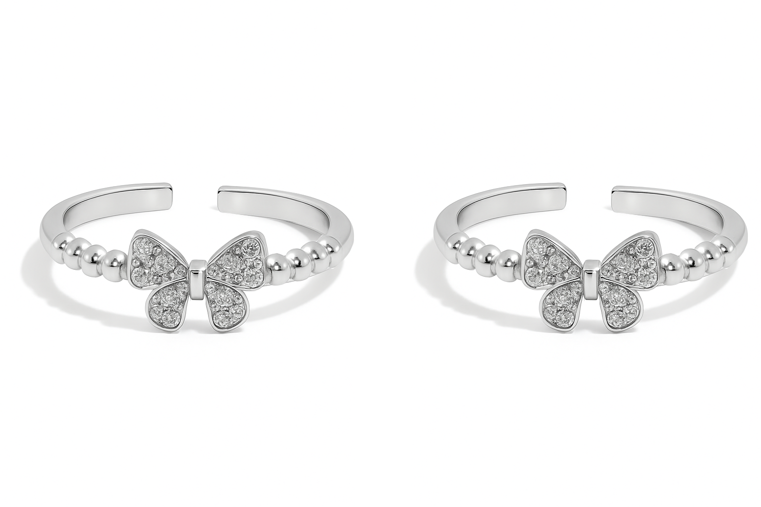 The Flutter Charm Toe Ring brings a playful yet elegant touch with its sparkling butterfly centerpiece. Designed with shimmering cubic zirconia wings set on a beaded 925 sterling silver band, this piece beautifully captures the grace and delicacy of a butterfly in flight. A perfect everyday jewel that adds sparkle and charm to your steps.